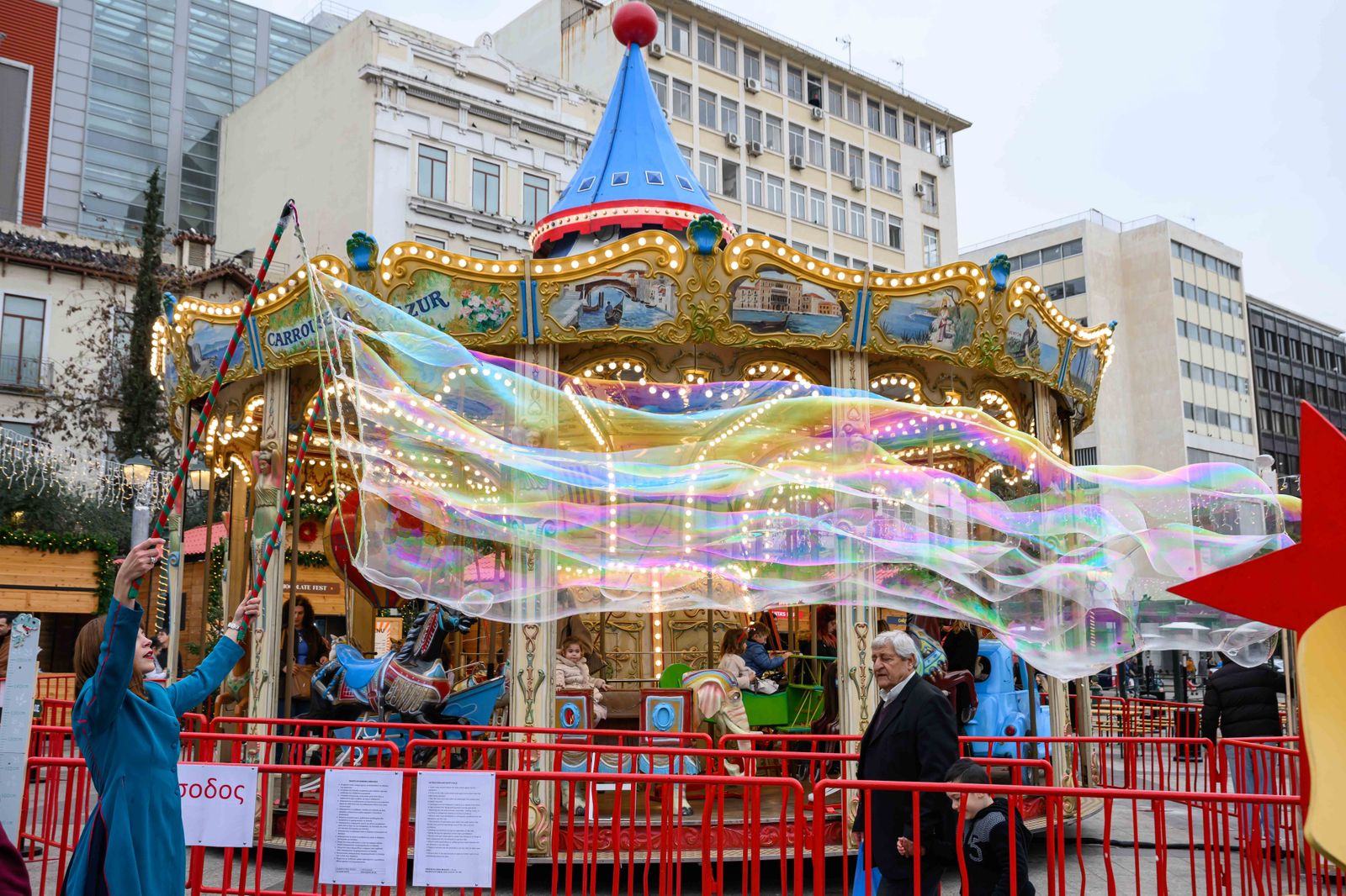 Στο κέντρο της πλατείας δεσπόζει το δωρεάν καρουζέλ, το οποίο ήδη προσελκύει παιδιά και γονείς, δημιουργώντας εικόνες που παραπέμπουν σε ευρωπαϊκές πρωτεύουσες κατά την εορταστική περίοδο.