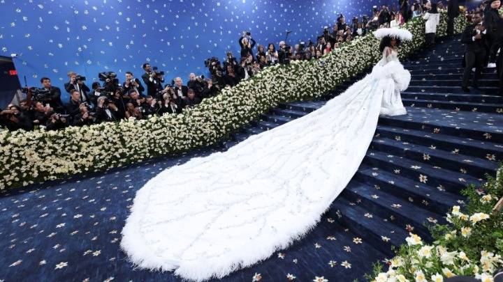 Η άφιξή της, σύμφωνα με την παρουσιάστρια της ζωντανής μετάδοσης του κόκκινου χαλιού της Vogue, La La Anthony, «έκλεισε όλο το χαλί», αφήνοντας άφωνους τους παρευρισκομένους και τους θεατές, ενώ έξι βοηθοί έτρεξαν να την βοηθήσουν.