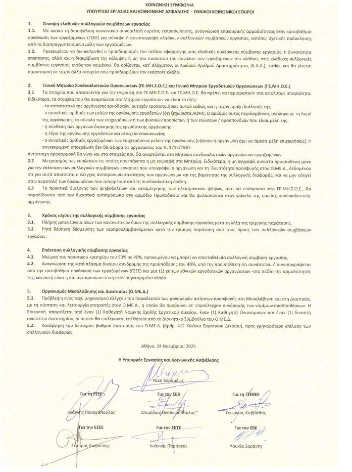 Στην πράξη αυτό σημαίνει ότι οι εργαζόμενοι σε ολόκληρους κλάδους — εμπόριο, εστίαση, τουρισμό, μεταποίηση, υπηρεσίες — θα μπορούν να έχουν κοινές αυξήσεις, κοινούς κανόνες και σαφείς όρους εργασίας.