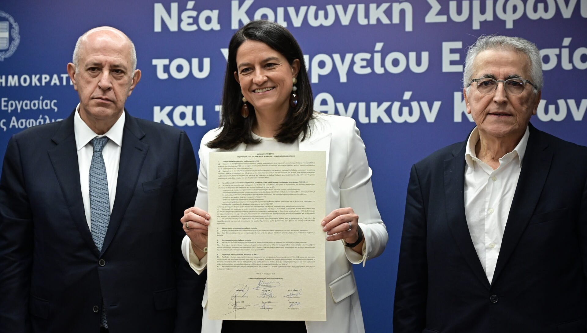 Η Υπουργός Εργασίας Νίκη Κεραμέως μίλησε για μια συμφωνία που «βάζει τέλος στην αβεβαιότητα» και επαναφέρει την κανονικότητα στις συλλογικές συμβάσεις. Όπως είπε, η κυβέρνηση θα μπορούσε να νομοθετήσει μόνη της. Διάλεξε όμως τον δύσκολο δρόμο της συνεννόησης. Και αυτό, όπως τόνισε, είναι που δίνει στη συμφωνία χαρακτήρα σταθερού θεσμικού πλαισίου, όχι πρόσκαιρης υπουργικής απόφασης.