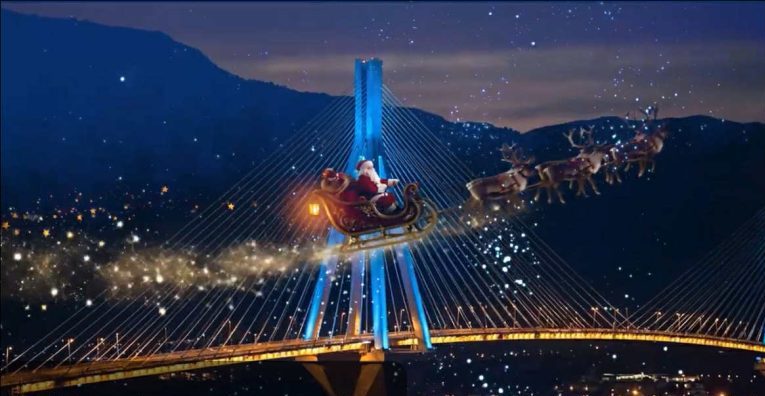 Με τον Αϊ Βασίλη να περνά με το έλκηθρο και τους ταράνδους πάνω από το εμβληματικό έργο – τοπόσημο για τη Δυτική Ελλάδα αλλά και ολόκληρη τη χώρα, η Γέφυρα Ρίου Αντιρρίου, στέλνει τo μήνυμα της για καλά Χριστούγεννα και ευτυχισμένο το 2026, με μία ευχή: Γέφυρες που να ενώνουν ανθρώπους, προορισμούς, οράματα και στόχους.