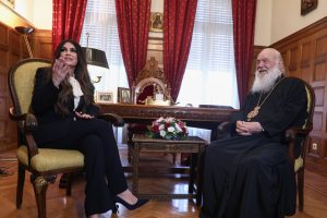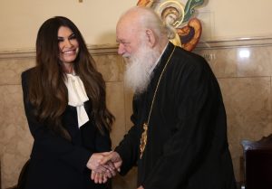 Η Κίμπερλι Γκίλφοϊλ επισκέφθηκε τον Αρχιεπίσκοπο Ιερώνυμο: «Θα έρχομαι στις λειτουργίες» του είπε (Photo)