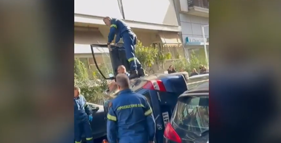 Η στιγμή που απεγκλωβίζουν τον οδηγό από τουμπαρισμένο αυτοκίνητο στον Βύρωνα (VIDEO)