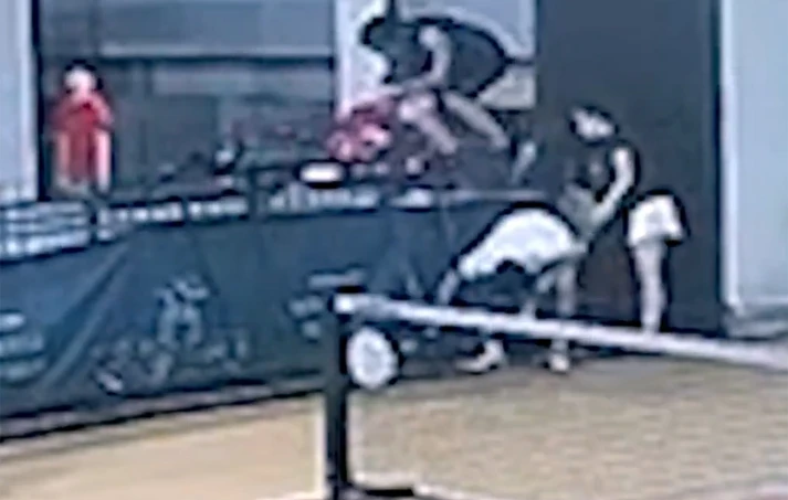 Στα πλάνα φαίνεται ο 32χρονος να περνάει τα κάγκελα ασφαλείας για να προσπαθήσει να ανακτήσει μια μπάλα από το γήπεδο του τρίτου ορόφου με το δίχτυ που υπήρχε εκεί να μην αντέχει το βάρος του.