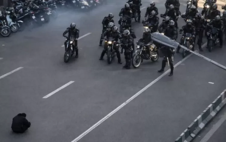 Η αλήθεια είναι πως η στιγμή που αποτυπώθηκε στην Τεχεράνη, όπου Ιρανός διαδηλωτής κάθεται μόνος του και σταυροπόδι μπροστά στους αστυνομικούς, θυμίζει όντως τη συγκλονιστική και καταγεγραμμένη στην ιστορία στιγμή, όπου Κινέζος φοιτητής είχε ξαπλώσει κατά τη διάρκεια των φοιτητικών διαδηλώσεων στο Πεκίνο και ένα άρμα είχε περάσει από πάνω του.