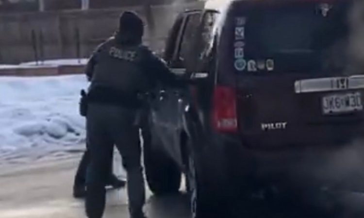 Καθώς ένας από τους πράκτορες προσπαθεί να ανοίξει την πόρτα, η γυναίκα βάζει γρήγορα την όπισθεν και προσπαθεί να επιταχύνει προς την κατεύθυνση ενός άλλου πράκτορα που βρίσκεται στον δρόμο της.
