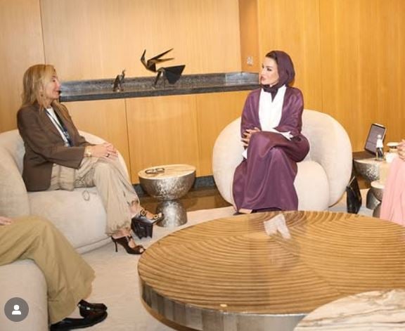 Η σύζυγος του Κυριάκου ήταν καλεσμένη της σεΐχας Μόζα μπιντ Νάσερ, μητέρας του σημερινού εμίρη του Κατάρ, Ταμίμ μπιν Χαμάντ αλ Θανί, την οποία έχουν χαρακτηρίσει ως «Τζάκι Κένεντι της Ανατολής». Λεπτομέρεια. Η σεΐχα έχει τοποθετήσει ψηλά στο δικό της Instagram τη Μαρέβα, ποστάροντας και τη συνάντηση που είχαν.