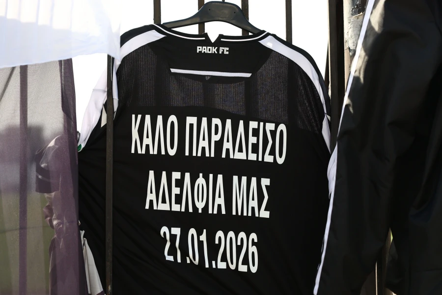Δίπλα τους βρίσκεται και μία μαύρη φανέλα με την επιγραφή «Αθάνατοι 27/01/2026», αφιερωμένη σε όσους χάθηκαν καθ’ οδόν για να σταθούν στο πλευρό της αγαπημένης τους ομάδας.