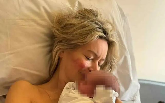 Στην αγκαλιά της κρατά το νεογέννητο μωράκι της η Άριελ Κωνσταντινίδη.