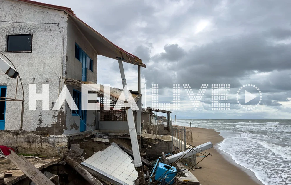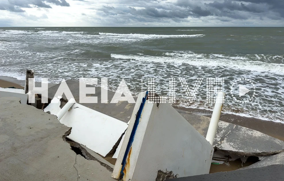 Συγκλονιστικές είναι οι εικόνες από την παραλιακή ζώνη του Πύργου, στη Μούτελη και τη Σπιάντζα.