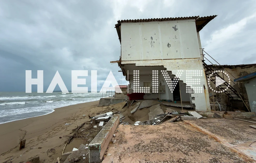 Οι θυελλώδεις άνεμοι και η έντονη διάβρωση των ακτών οδήγησαν στην κατάρρευση τμήματος κατοικίας, με τη θάλασσα να «καταπίνει» κυριολεκτικά τα θεμέλια και το ισόγειο.