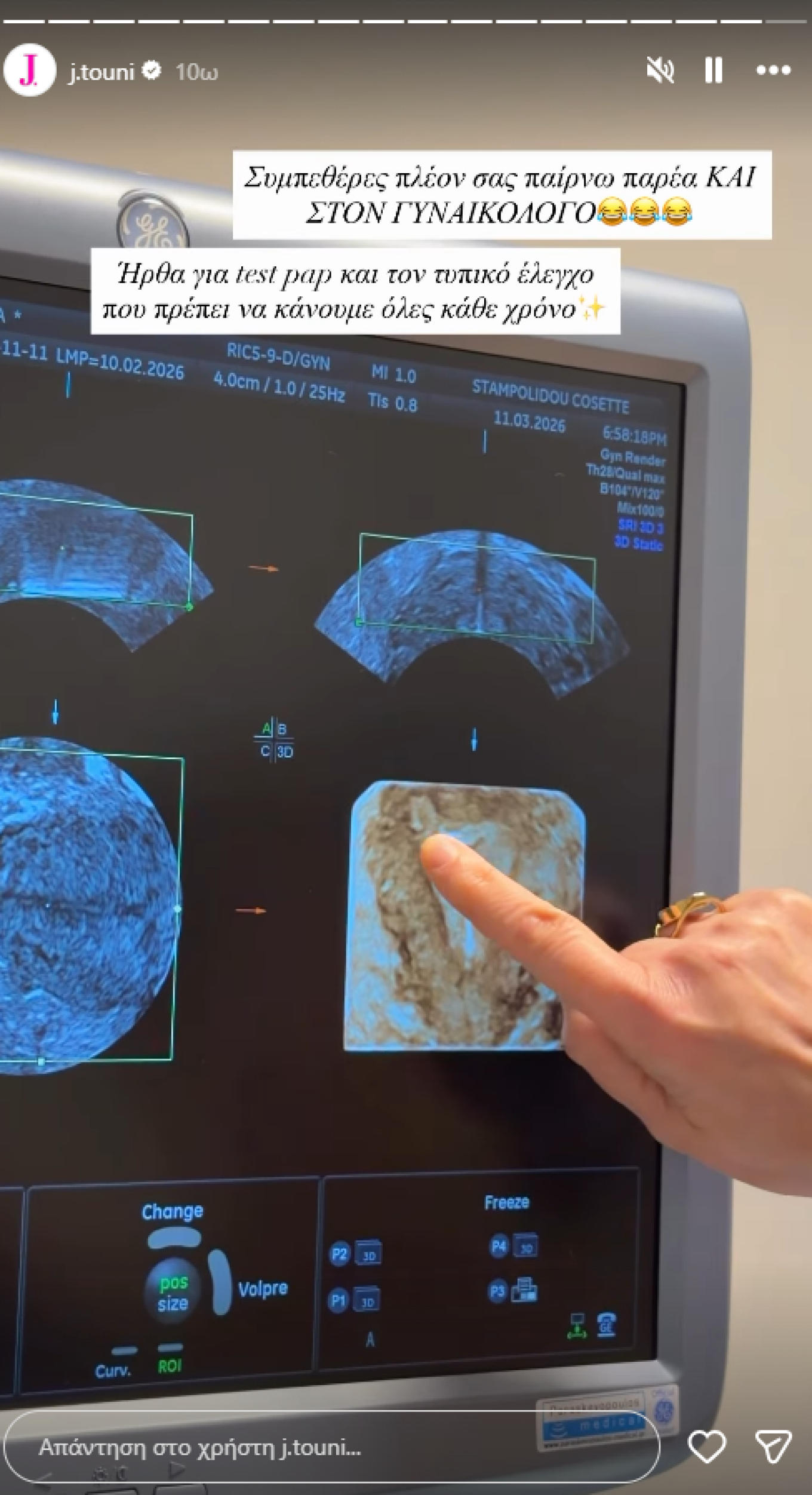 Όλα ξεκίνησαν όταν η Ιωάννα μοιράστηκε στιγμιότυπα από τον ετήσιο προληπτικό της έλεγχο. Σε μία από τις εικόνες φαινόταν η οθόνη του υπερήχου, ένα θέαμα που στο μυαλό πολλών είναι άρρηκτα συνδεδεμένο με τον ερχομό ενός μωρού.