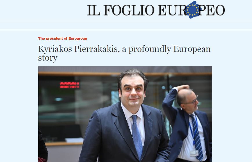Εκτενές αφιέρωμα στον νέο πρόεδρο του Eurogroup, τον Έλληνα υπουργό Εθνικής Οικονομίας και Οικονομικών, Κυριάκο Πιερρακάκη, υπό τον τίτλο «Κυριάκος Πιερρακάκης μία βαθιά ευρωπαϊκή ιστορία» φιλοξενεί η διαδικτυακή έκδοση του ιταλικού μέσου μαζικής ενημέρωσης Il Foglio.