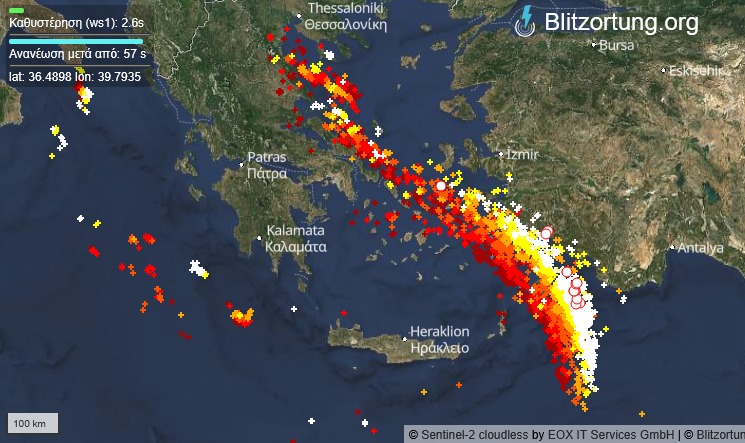 Καταγράφηκαν 6.221 ηλεκτρικές εκκενώσεις πάνω από την ξηρά και 65.112 πάνω από τη θάλασσα