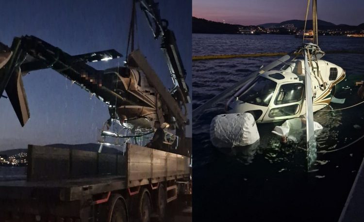 Υπενθυμίζεται ότι το ελικόπτερο, με πέντε επιβαίνοντες, έχασε την ισχύ του και «βούτηξε» στη θάλασσα νωρίς χθες το μεσημέρι, μπροστά στα έκπληκτα μάτια των λουόμενων και των θαμώνων καταστημάτων εστίασης που βρίσκονταν στην περιοχή και παρακολουθούσαν με κομμένη την ανάσα την «τρελή» πορεία του.