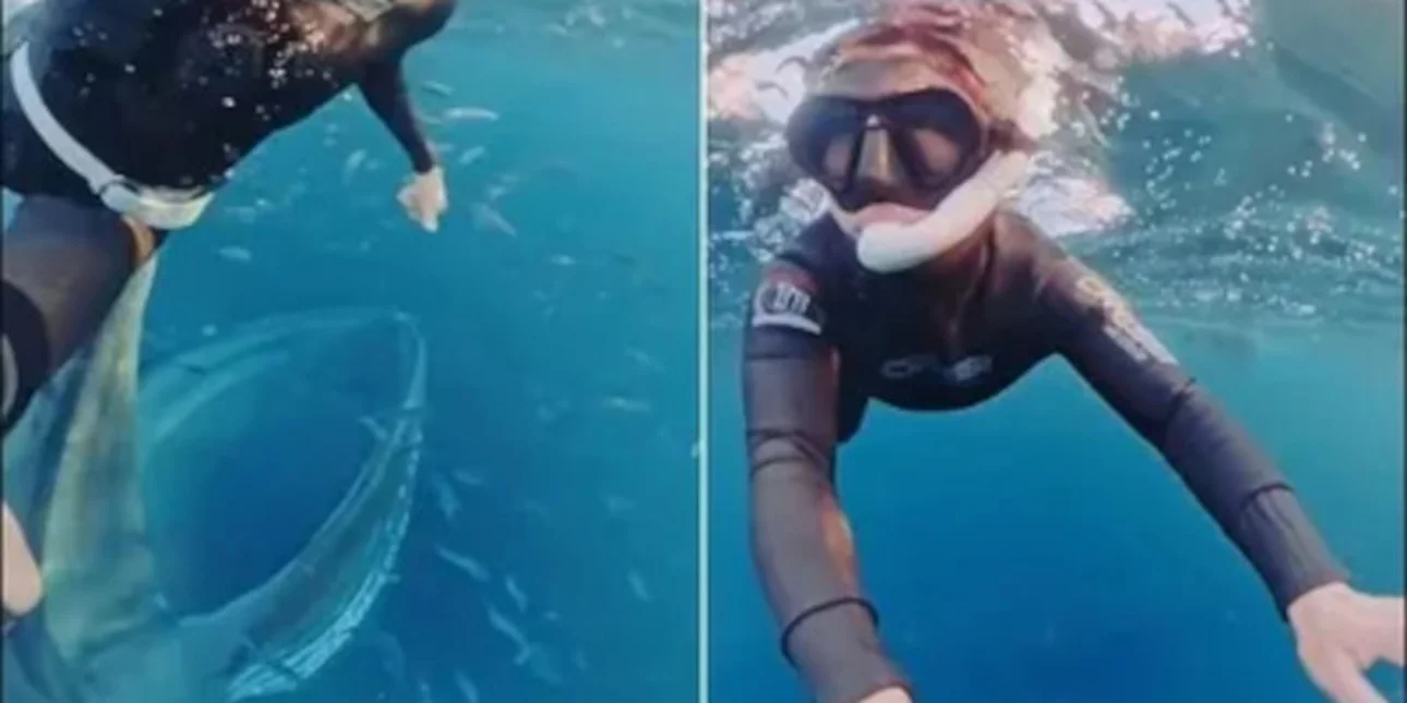 Τα σαγόνια της φάλαινας-φυσητήρα πλησίασαν λίγα μόλις εκατοστά από το σώμα της δύτριας, αλλά την τελευταία στιγμή το κήτος έστριψε και απομακρύνθηκε αποφεύγοντας τη σοκαρισμένη Αυστραλή.