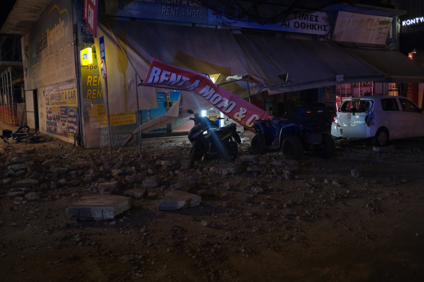 Κατέρρευσε μπαλκόνι ημιτελούς οικοδομής στα Χανιά - Συντρίμμια προκάλεσαν ζημιές σε οχήματα και κατάστημα, δείτε φωτογραφίες