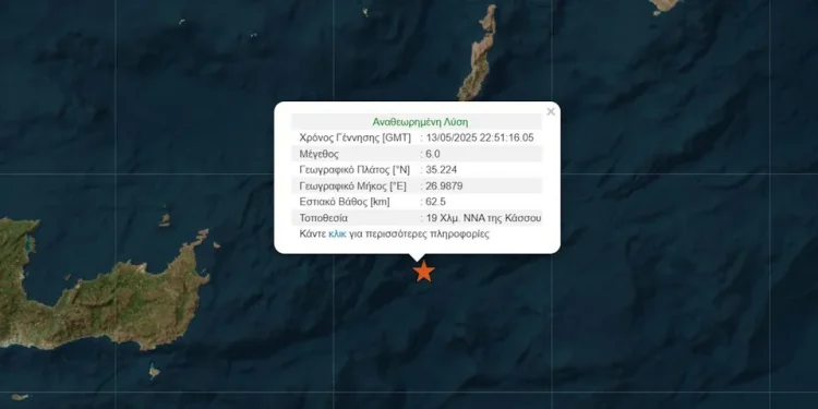 Συγκεκριμένα, στη 1.50 τα ξημερώματα της Τετάρτης (14.05.2025), σημειώθηκε σεισμική δόνηση μεγέθους 6,1 Ρίχτερ ανάμεσα σε Κρήτη, Κάσο και Κάρπαθο με μεγάλο εστιακό βάθος αναστατώνοντας τους κατοίκους.