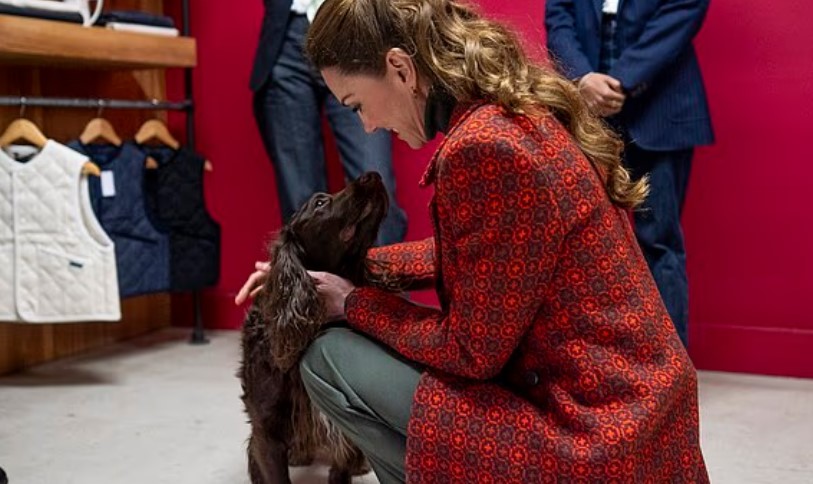 Νωρίτερα, η υποδοχή στο εργοστάσιο είχε έναν ιδιαίτερο τόνο, καθώς την πριγκίπισσα καλωσόρισε ο Μπάρνεϊ, ένας επτάχρονος κόκερ σπάνιελ, ο οποίος φορούσε ένα κομψό τζιν παπιγιόν, ταιριάζοντας απόλυτα στο πνεύμα της επιχείρησης.