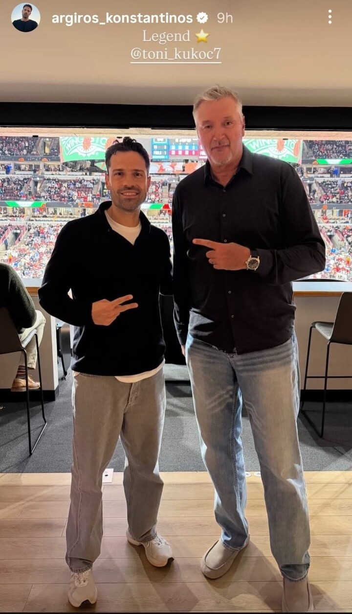 Ο Κροάτης σταρ, που άνοιξε τον δρόμο για τους Ευρωπαίους στο NBA και πανηγύρισε επίσης τρία πρωταθλήματα δίπλα στον Michael Jordan, συνομίλησε με τον Έλληνα τραγουδιστή, ολοκληρώνοντας με τον καλύτερο τρόπο μια εμπειρία που σίγουρα θα του μείνει αξέχαστη.