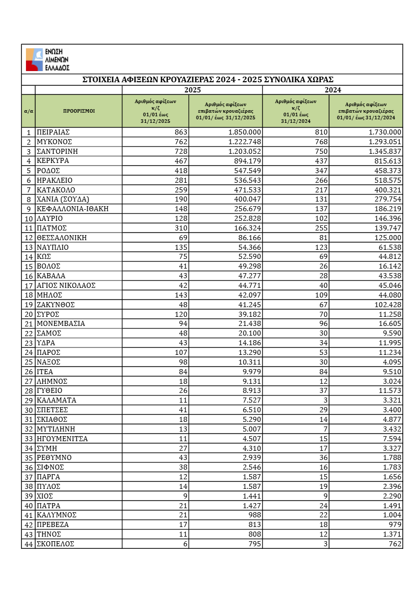 Eπιβεβαιώνοντας ότι ο κλάδος παραμένει σε τροχιά ανάπτυξης για τέταρτη συνεχόμενη χρονιά, η κρουαζιέρα στην Ελλάδα συνέχισε την ανοδική της πορεία και το 2025.