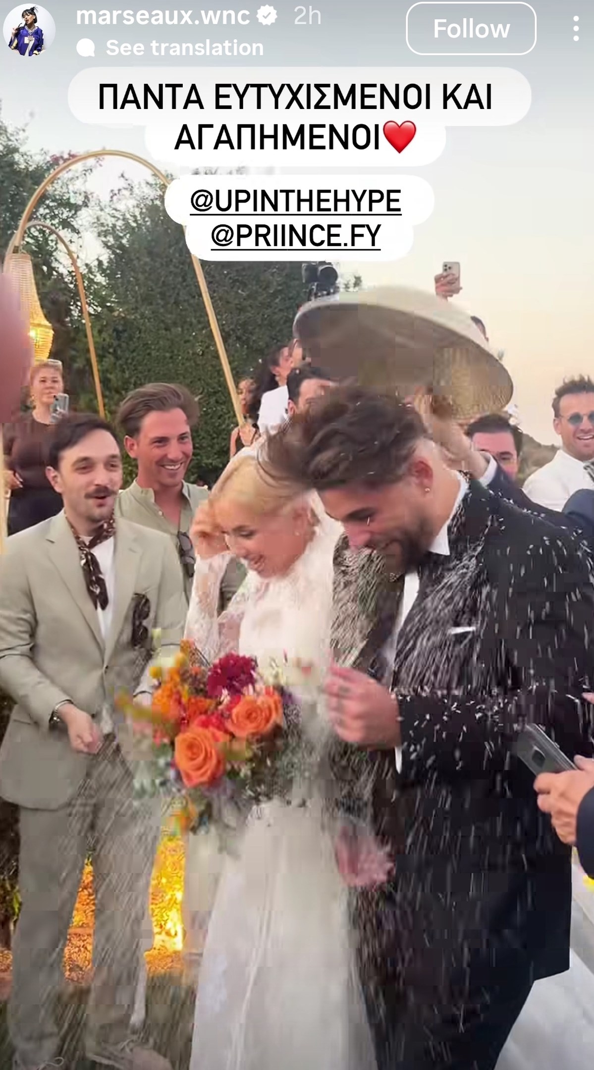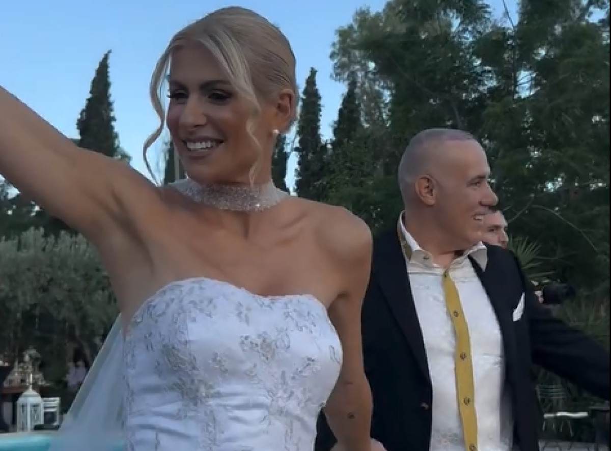 Η στιγμή αυτή, γεμάτη συγκίνηση και ρομαντισμό, αποτέλεσε το πρώτο highlight του γάμου. Aκολούθησε δεξίωση και πάρτι που κράτησε μέχρι τις πρώτες πρωινές ώρες.