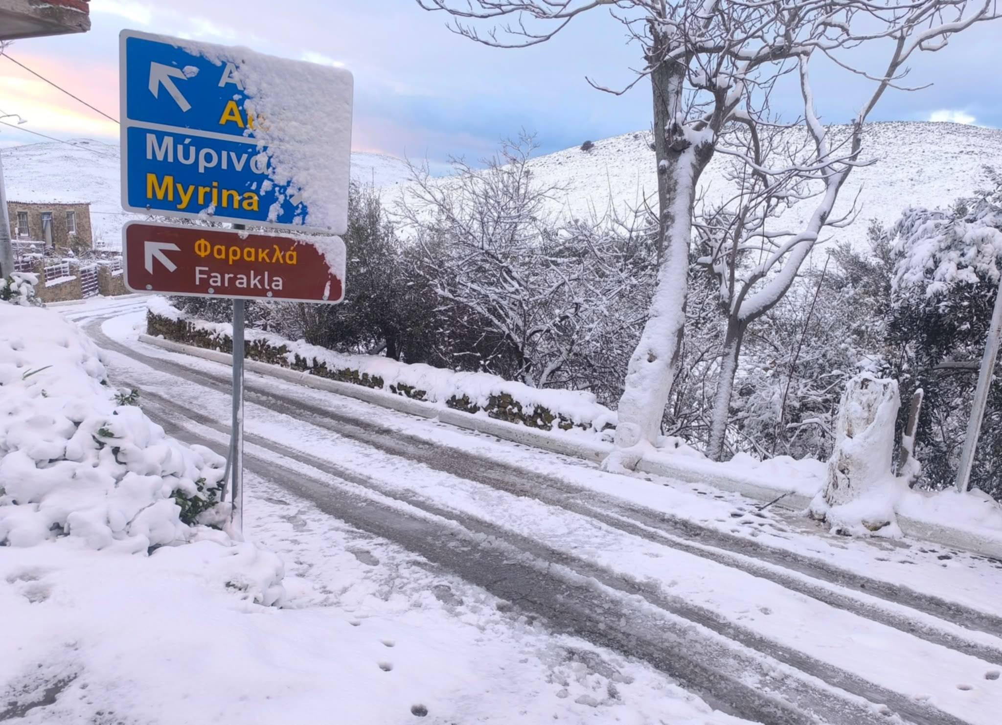 Η Λήμνος ξύπνησε ντυμένη στα λευκά την Πρωτοχρονιά, με το νησί να μοιάζει βγαλμένο από χειμωνιάτικο παραμύθι, καθώς οι χιονοπτώσεις κάλυψαν κάθε σπιθαμή του εδάφους.