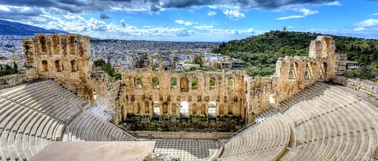 Απόγευμα στη Διονυσίου Αρεοπαγίτου. Βόλτα με ένα παγωτό στο χέρι, με τον ήλιο που δύει να «χτυπάει» κατάματα. Περπατώντας προς τα σκαλιά του Ηρωδείου, ξεπροβάλει σταδιακά, ανάμεσα στα δέντρα, ο νότιος τοίχος του με τις χαρακτηριστικές καμάρες. Ανεβαίνοντας, αρχίζει να φαίνεται σε όλο του το μεγαλείο ανάμεσα στις ελιές που στοιχίζονται στο πλάι, με το υψηλότερο σημείο του, ύψους σχεδόν 30 μέτρων. Από πάνω, επιβλητικός και φωτεινός, ο Παρθενώνας.