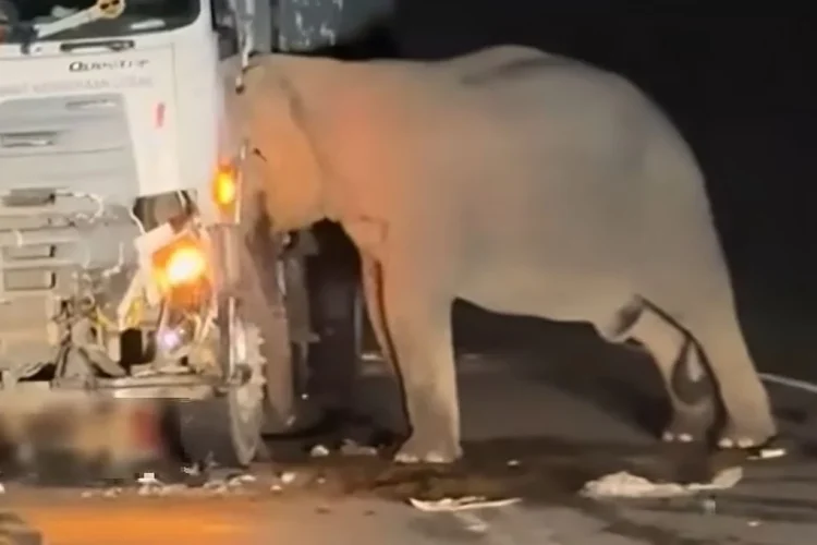 Συγκίνηση έχει προκαλέσει το βίντεο που κάνει το γύρω του κόσμου με μία μαμά ελέφαντα να μένει με το κεφάλι κολλημένο πάνω στο φορτηγό που χτύπησε το παιδάκι της.