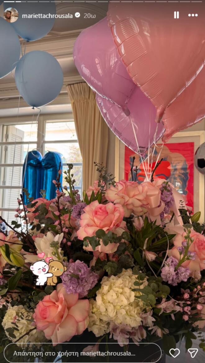 Το σπίτι γέμισε με εντυπωσιακές ανθοδέσμες, πολύχρωμα γλαστράκια και μπαλόνια, δημιουργώντας μια άκρως γιορτινή ατμόσφαιρα.