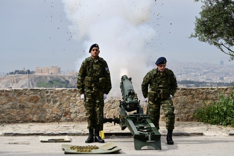 Με τον καθιερωμένο συμβολισμό των 21 κανονιοβολισμών από τον Λυκαβηττός ξεκίνησαν νωρίς το πρωί της 25ης Μαρτίου οι εορταστικές εκδηλώσεις στην Αθήνα για την εθνική επέτειο της Ελληνικής Επανάστασης.
