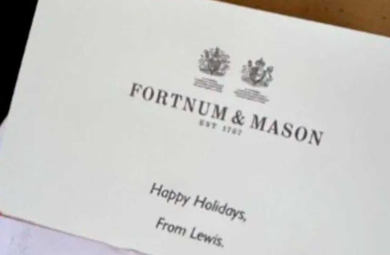 Τα καλάθια λοιπόν που έλαβαν οι υπάλληλοι της αγωνιστικής ομάδας ήταν γεμάτα με τσάι Fortnum & Mason, μπισκότα και σοκολάτα, συνοδευόμενα από μια υπογεγραμμένη φωτογραφία και μια κάρτα που έγραφε: «Καλές γιορτές, από τον Lewis».
