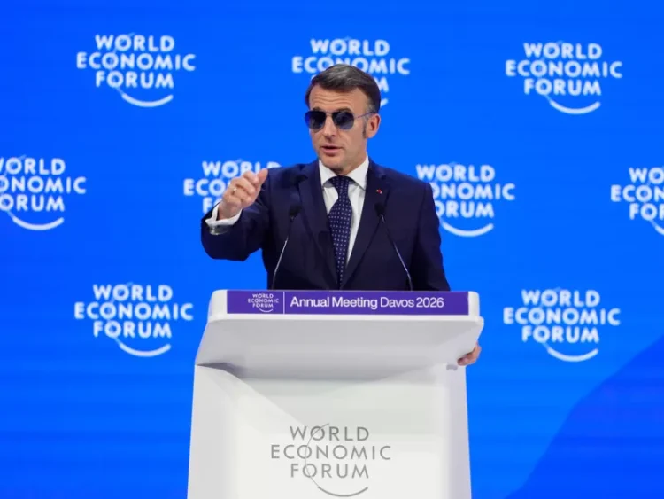 Με γυαλιά ηλίου στο Νταβός ο Μακρόν: «Απαράδεκτοι οι νέοι δασμοί – Η Ευρώπη πρέπει να απαντήσει»