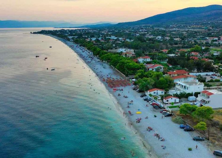 Παράκτια ρότα με βιομηχανικά τοπόσημα και παραλίες του Κορινθιακού – ιδανική για road trip με αρκετές στάσεις.
