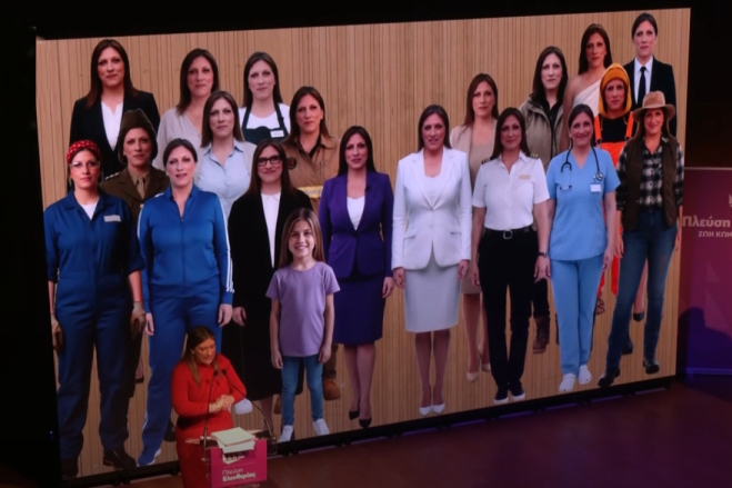 Εμφανίζοντας τον εαυτό της σε όσους ρόλους μπορεί κανείς να φανταστεί με τη βοήθεια της τεχνητής νοημοσύνης, η Ζωή Κωνσταντοπούλου παρουσίασε το πρόγραμμα της Πλεύσης Ελευθερίας.