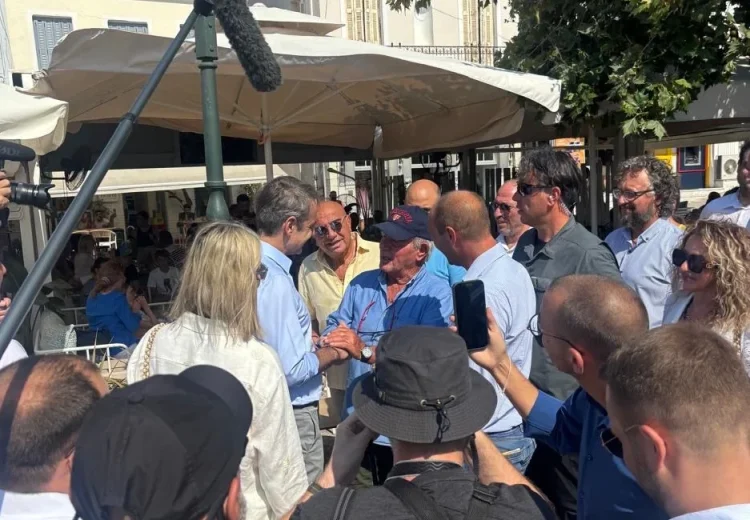 Νωρίτερα, ο Κυριάκος Μητσοτάκης έκανε περιοδεία στο νησί, συνομιλώντας με κατοίκους, τουρίστες και επιχειρηματίες.