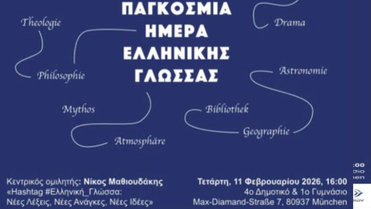 Εκδήλωση για την Παγκόσμια Ημέρα Ελληνικής Γλώσσας διοργανώνει το Γενικό Προξενείο Μονάχου, σε συνεργασία με το Ίδρυμα Παλλάδιον, την Τετάρτη 11 Φεβρουαρίου 2026 και ώρα 16:00, στο νέο κτίριο του 4ου Δημοτικού Σχολείου “Αριστοτέλης ” και του 1ου Γυμνασίου, στην οδό Max-Diamand-Str. 7, 80937 στο Μόναχο.