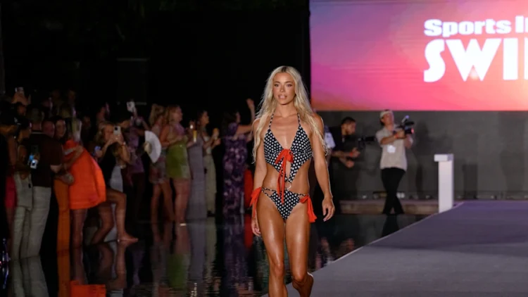 Η πρώην αθλήτρια ενόργανης γυμναστικής του LSU εμφανίστηκε φορώντας ένα χαρακτηριστικό μαγιό με ασπρόμαυρα μοτίβα και έντονες κόκκινες λεπτομέρειες. Η στιγμή που έκλεψε την παράσταση ήταν όταν, φτάνοντας στο τέλος της πασαρέλας, πραγματοποίησε σπαγγάτο, προκαλώντας ενθουσιασμό τόσο στο κοινό που βρισκόταν εκεί, όσο και στους χρήστες των social.