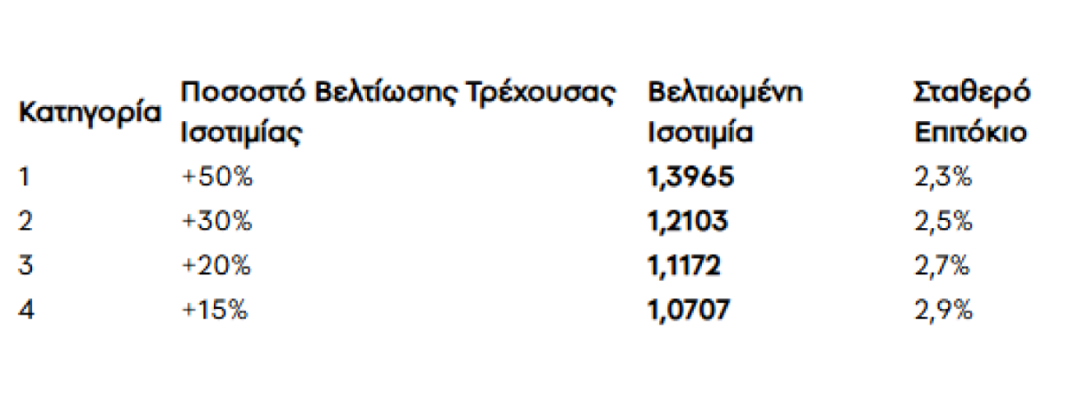 Η μετατροπή της οφειλής από CHF σε ευρώ θα γίνεται με βελτιωμένη ισοτιμία, διασφαλίζοντας σταθερό επιτόκιο καθ’ όλη τη διάρκεια του δανείου. Η τρέχουσα ισοτιμία αναφοράς της ΕΚΤ είναι 0,9310 CHF/EUR, που σημαίνει ότι οι δανειολήπτες θα μπορέσουν να μειώσουν την οικονομική τους επιβάρυνση.