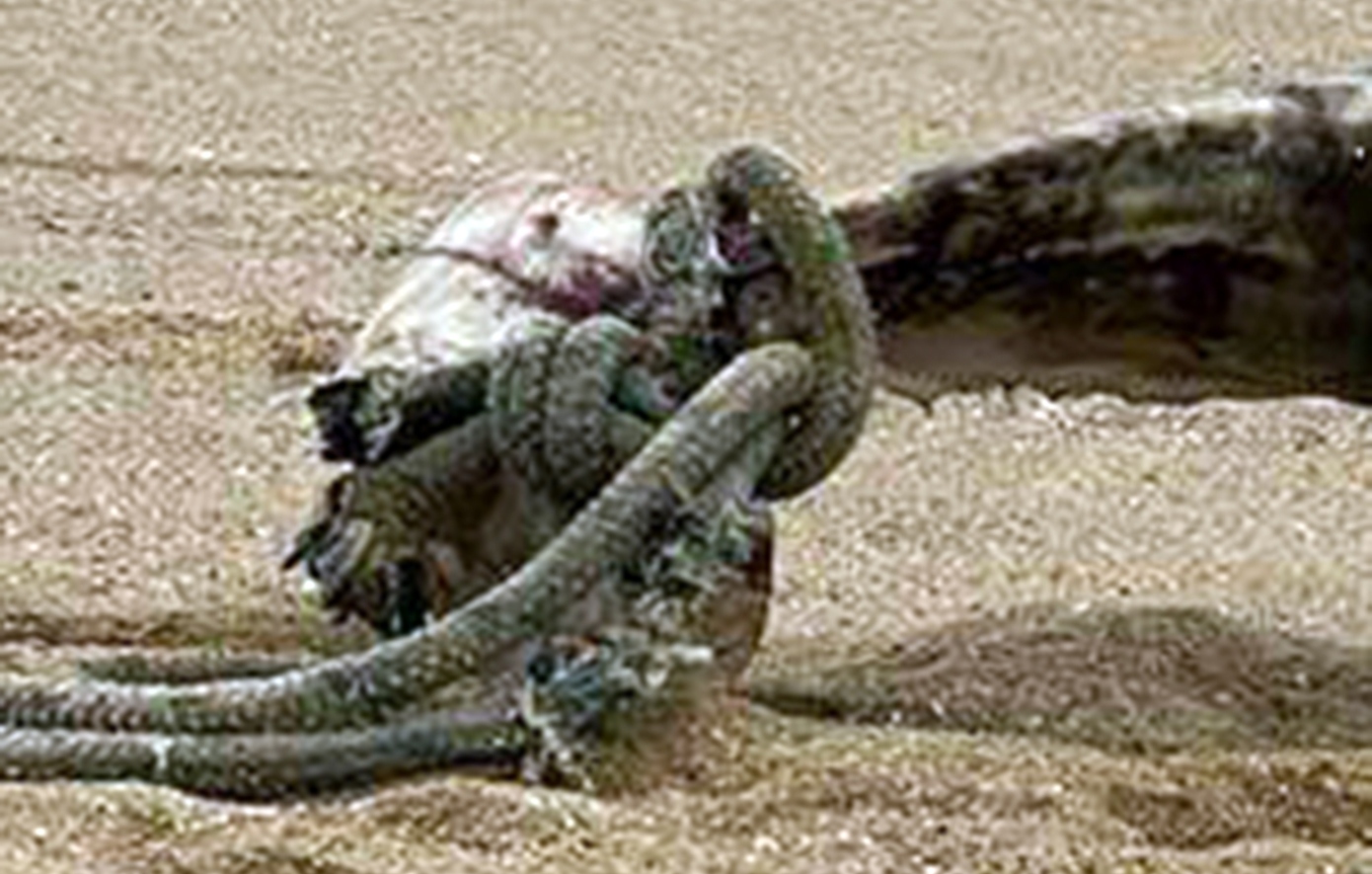 Ένα νεκρό δελφίνι βρέθηκε το βράδυ του Σαββάτου 3 Ιανουαρίου 2026 στην παραλία της Ραψάνης στην Καβάλα. Στην ουρά του ζώου ήταν δεμένο ένα χοντρό σχοινί, γεγονός που ενδεχομένως συνδέεται με την αιτία θανάτου.