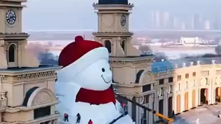 Μία εικόνα από την Κίνα που κάνει τον γύρο των social media τραβάει το μάτι και εντυπωσιάζει. Στο Qunli Music Park, στην πόλη Χαρμπίν της επαρχίας Χεϊλονγκτζιάνγκ, εργάτες και καλλιτέχνες συνεργάστηκαν για να στήσουν έναν γιγαντιαίο χιονάνθρωπο, ύψους 19 μέτρων, κατασκευασμένο από χιλιάδες κυβικά μέτρα χιονιού.