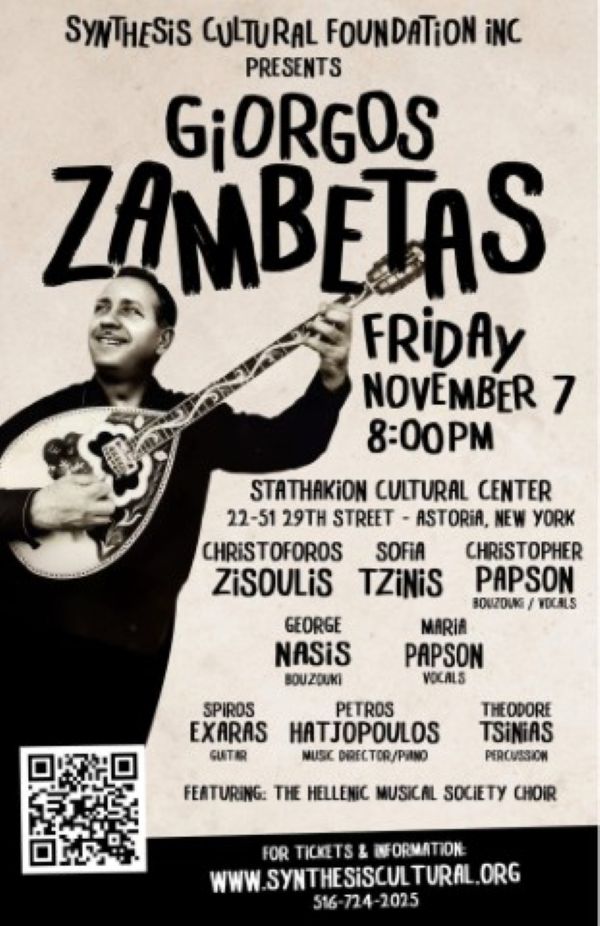 Το Πολιτιστικό Ίδρυμα «Σύνθεσης» (Synthesis Cultural Foundation Inc.) εγκαινιάζει τη νέα του σεζόν με ένα ιδιαίτερο αφιέρωμα στον εμβληματικό Γιώργο Ζαμπέτα, μια προσωπικότητα που έχει αφήσει ανεξίτηλη τη σφραγίδα της στην ελληνική μουσική.