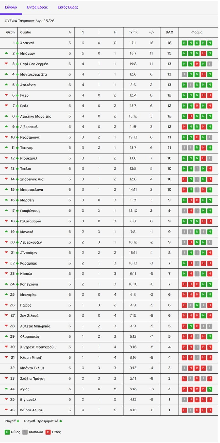 Η βαθμολογία του Champions League