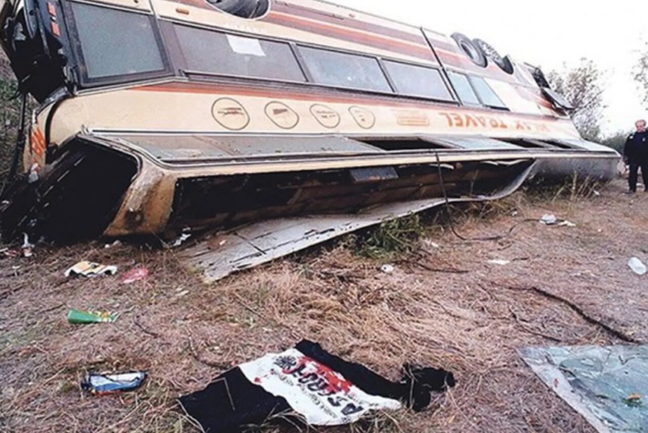 Το λεωφορείο ανατράπηκε, σύρθηκε εκτός δρόμου, και έξι ψυχές πέταξαν ψηλά.