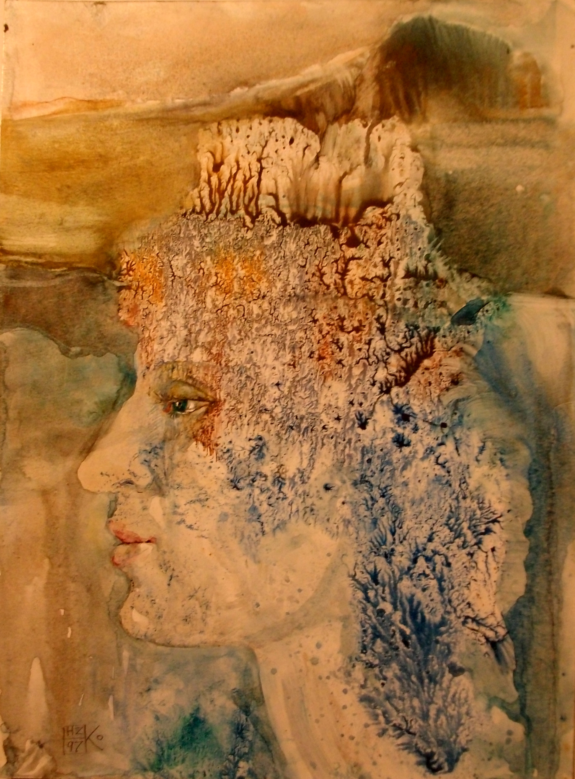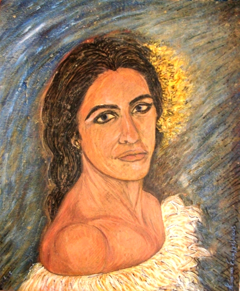 Εκεί εκτίθεται η ζωγραφική του σύνθεση με τίτλο «Εγκαρτέρηση», ένα έργο που μοιάζει να συνοψίζει την υπομονή και τη δύναμη της γυναίκας μέσα στον χρόνο.