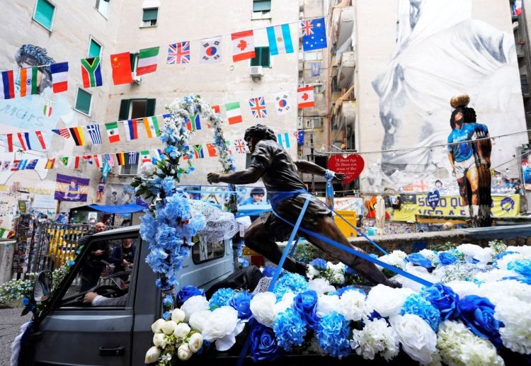 Ο Ντιέγκο Μαραντόνα αποτελεί έναν εμβληματικό θρύλο για τη Νάπολι. Οι κάτοικοι της πόλης, καθώς και οι οπαδοί της ομάδας, διατηρούν ζωντανή τη μνήμη του μεγάλου Αργεντινού ποδοσφαιριστή, ο οποίος έφυγε νωρίς από τη ζωή.