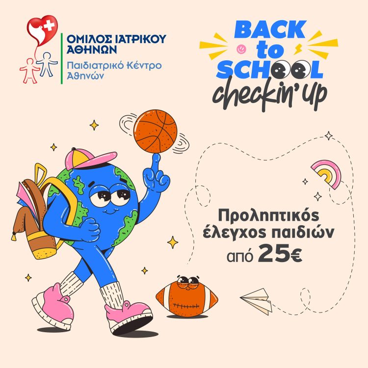Αναγνωρίζοντας το σημαντικό ρόλο της πρόληψης και έγκαιρης διάγνωσης, και με αφορμή την έναρξη της περιόδου των εγγραφών, για τη νέα σχολική χρονιά, το Παιδιατρικό Κέντρο Αθηνών και το Ιατρικό Διαβαλκανικό Θεσσαλονίκης, του Ομίλου Ιατρικού Αθηνών, προσφέρουν ολοκληρωμένα πακέτα προληπτικών εξετάσεων «Back to school» σε προνομιακές τιμές.