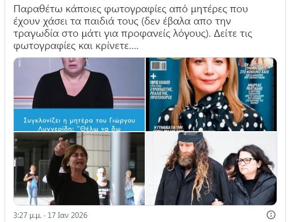 Κάποιοι χρήστες συγκρίνουν την Μαρία Καρυστιανού με άλλες μάνες που έχασαν τα παιδιά τους σε πολλές τραγωδίες στο παρελθόν, ενώ άλλοι αναρωτιούνται με τι κριτήριο θα ψηφίσει κάποιος ένα κόμμα υπό την ίδια αρχηγό.