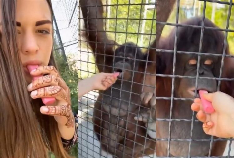 MMA fighter Anastasia Luchkina was caught on video giving a vape to an orangutan at Taigan Park in Crimea.#Viral #Orangutan #Vaping #News pic.twitter.com/yZbh42DhdB