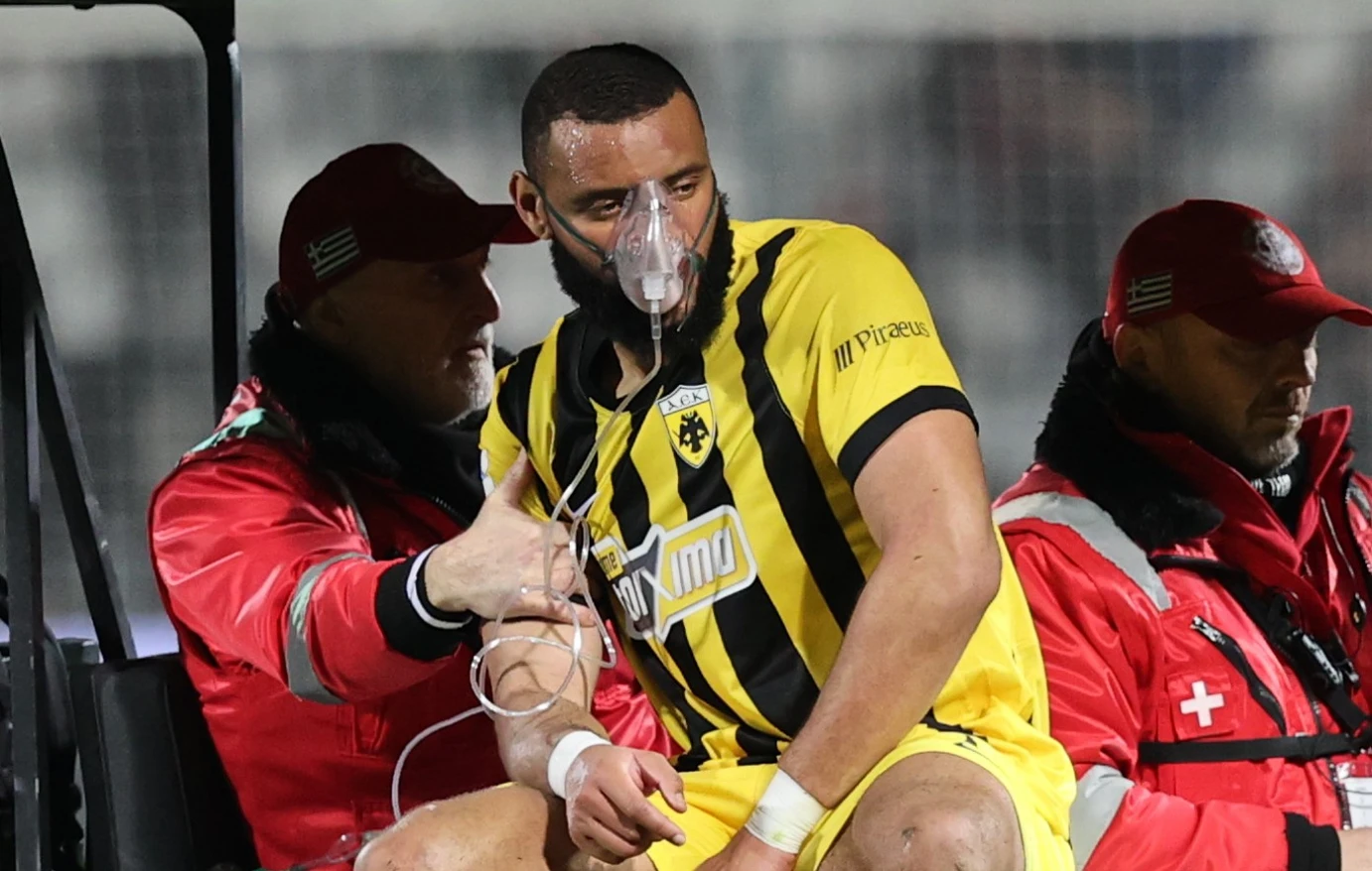 Τελικά έκανε νόημα προς τον πάγκο ότι δεν μπορούσε να συνεχίσει και αποχώρησε από τον αγωνιστικό χώρο με φορείο και μάσκα οξυγόνου, για να κάτσει στη συνέχεια στον πάγκο της ομάδας του.